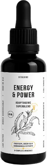 Malé množství kofeinu obsahuje Energy & Power Adaptogenic Superblend, kde se jedná o funkční složku ze zeleného čaje pro podporu energie a výkonu